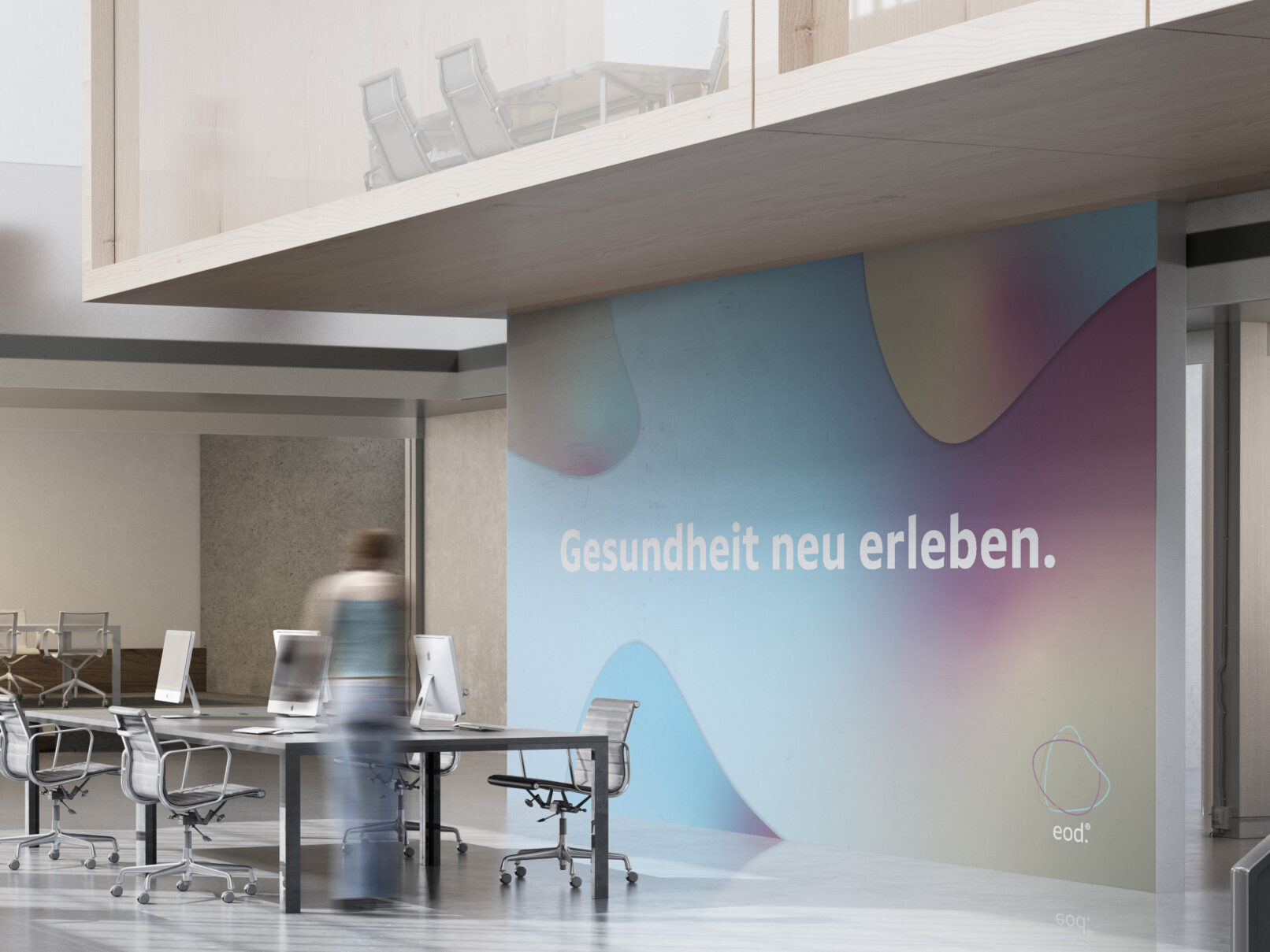 Das Gestaltungskonzept des eod-Centers basiert auf der Idee einer Einheit, in der die Bereiche Ernährung , Bewegung und nahtlos ineinander übergehen – ein ganzheitlicher Ansatz, der für eine optimale Gesundheit entscheidend ist. Diese ganzheitliche Gesundheit wird durch individuelle Behandlungskonzepte und die Berücksichtigung persönlicher Bedürfnisse betont. Das Designkonzept des eod-Centers reflektierte die Vielfalt und Einzigartigkeit jedes Menschen, wobei unterschiedliche Formen , Verläufe und Farben genutzt werden, um die Individualität jedes Einzelnen zu unterstreichen und zu repräsentieren.